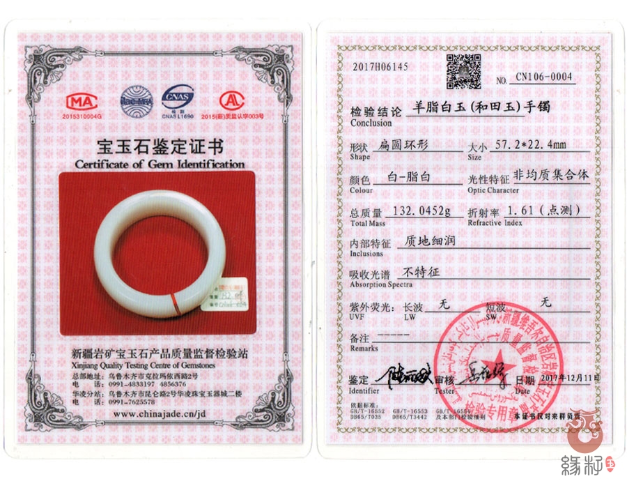 (附:新疆岩矿宝玉石产品质量监督检验站;国家和田玉产品质量监督检验中心样例)