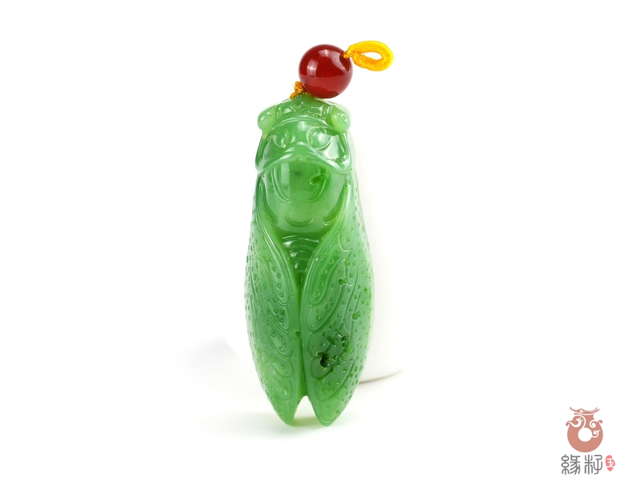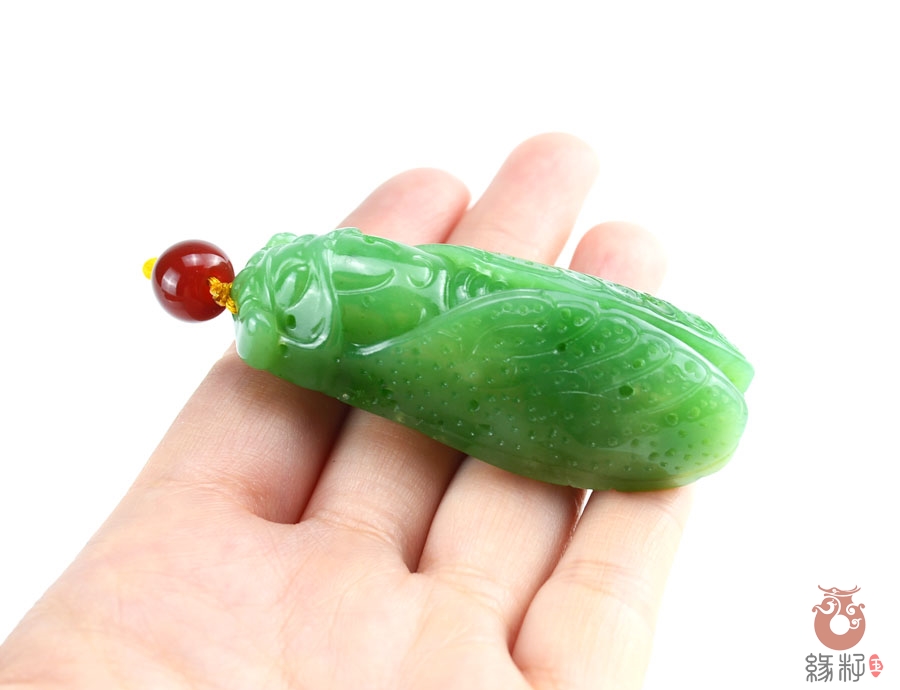 作品简述:缘籽和田玉蝉挂件吊坠,天然优质和田玉碧玉,苏工大师设计雕刻,质地油润,光泽细腻,雕工精细,寓意一鸣惊人,国检证书,七天无理由退货。