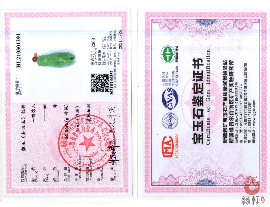 中国新疆和田玉网出售的商品均出具以下资质的国家权威质检部门质检证书: