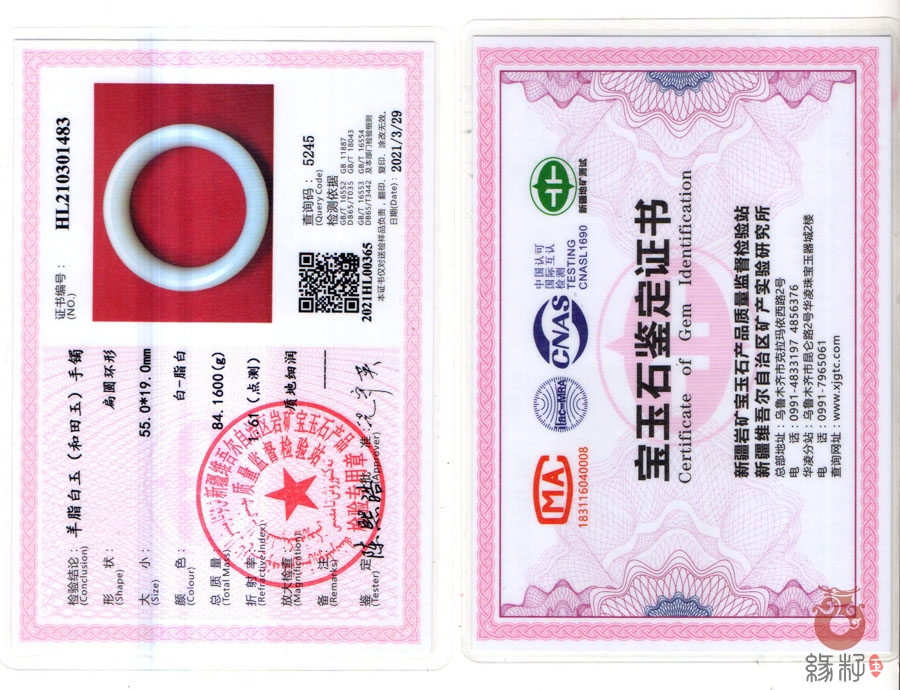 (附:新疆岩矿宝玉石产品质量监督检验站;国家和田玉产品质量监督检验中心样例)