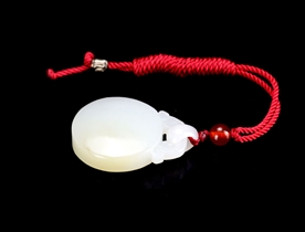 作品特色: 糖白交互自然沁润,凝脂飘糖,红白相映,美观大气,寓意吉祥,独居特色,优质糖羊脂玉精品/纯天然和田玉白玉精品;经典设计,造型传神,优美大气,栩栩如生,灵气十足;