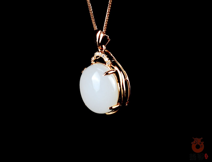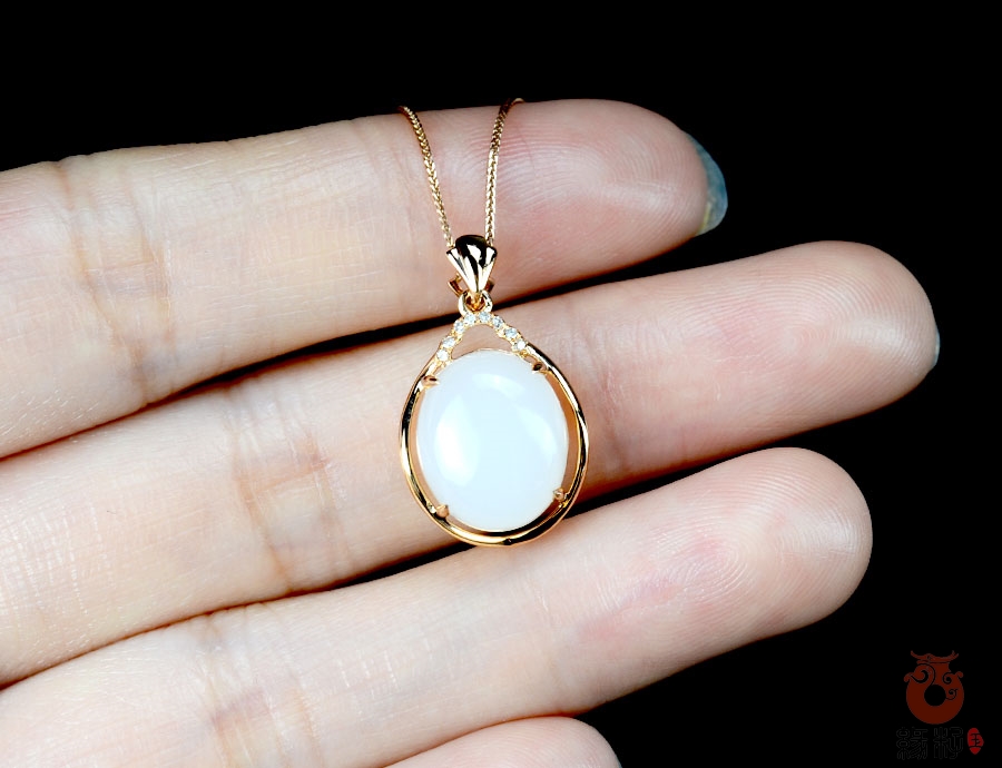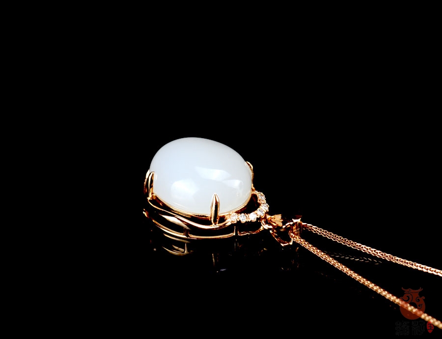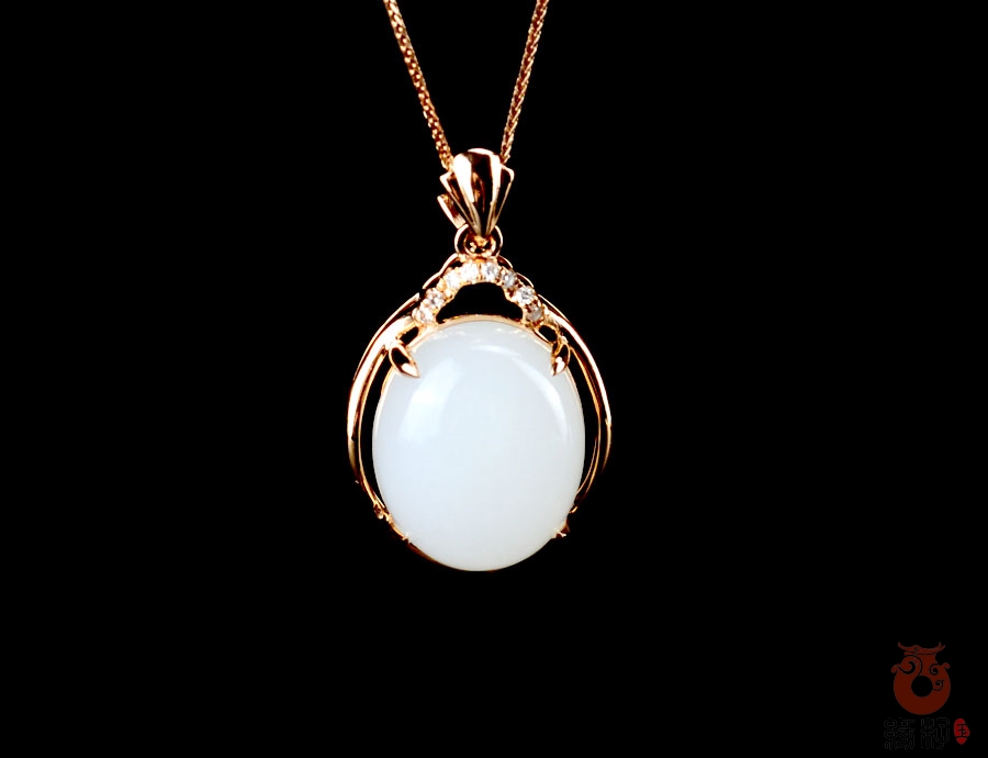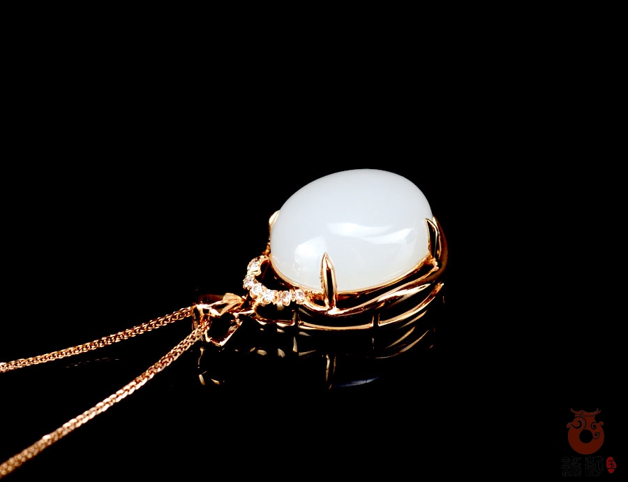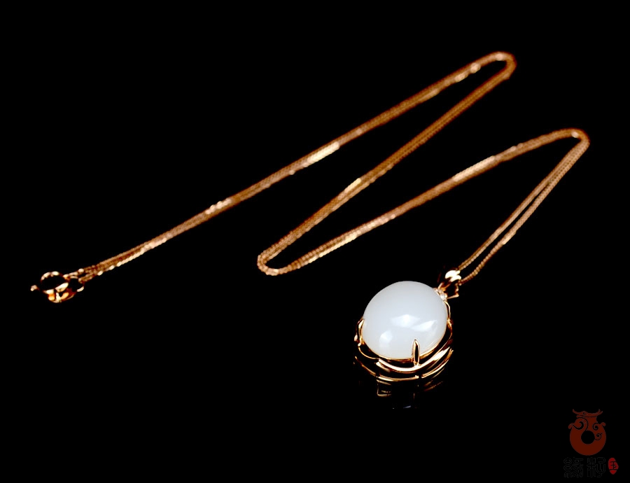 和田玉金镶吊坠和田玉羊脂玉18K金镶吊坠