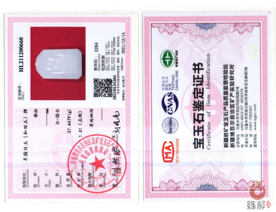 中国新疆和田玉网出售的商品均出具以下资质的国家权威质检部门质检证书:
