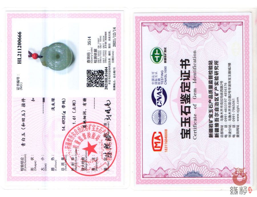 中国新疆和田玉网出售的商品均出具以下资质的国家权威质检部门质检证书: