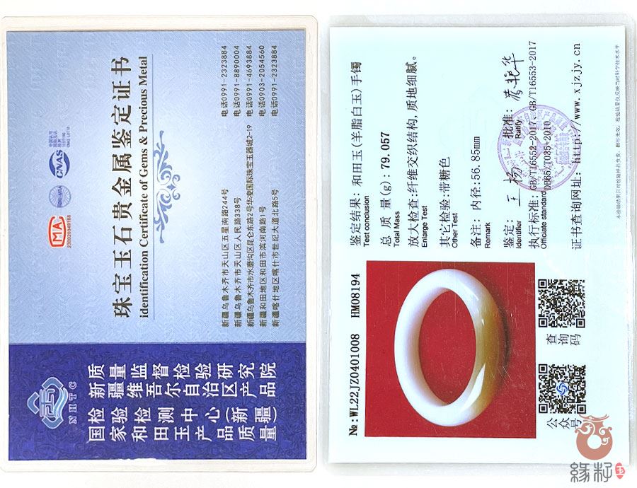 (附:新疆岩矿宝玉石产品质量监督检验站;国家和田玉产品质量监督检验中心样例)