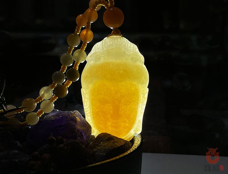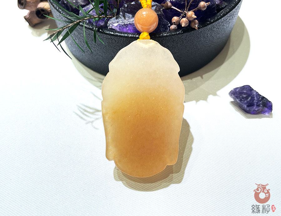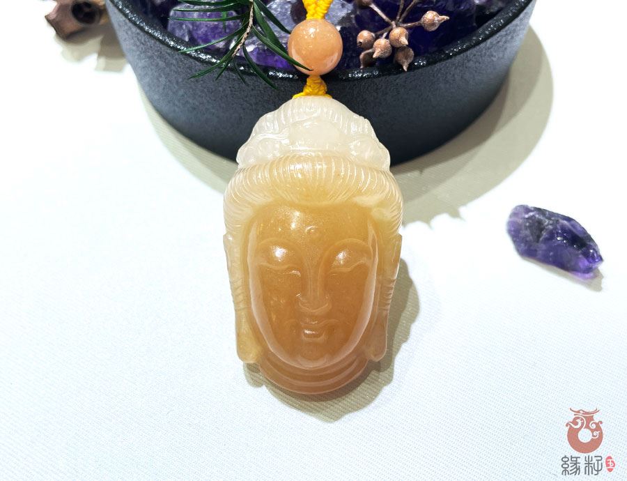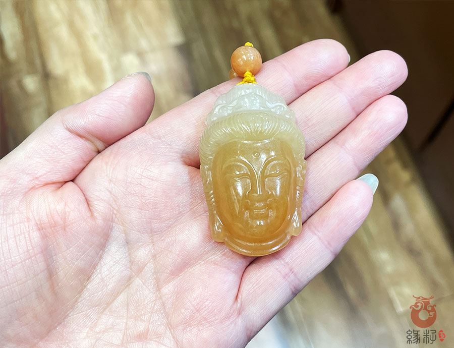 作品简述:缘籽金丝玉观音挂件,选用纯天然上等金丝玉原石,苏工大师雕刻,金丝玉观音挂件质地油润光泽细腻,设计完美,雕工精细。