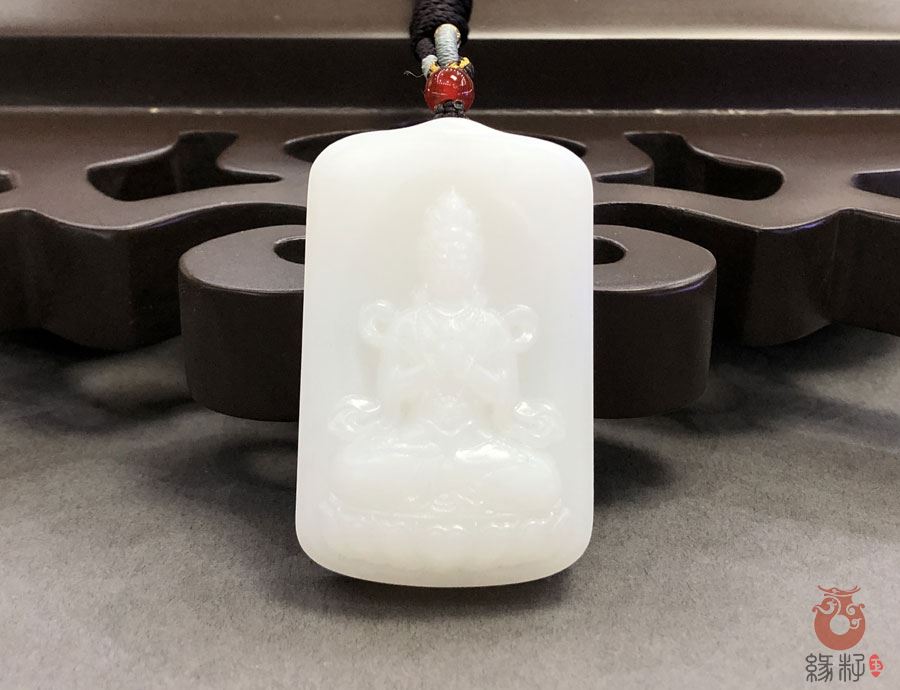 和田玉温润养人,观音本身具消病除障法力,共同强化祛病延寿的象征意义。