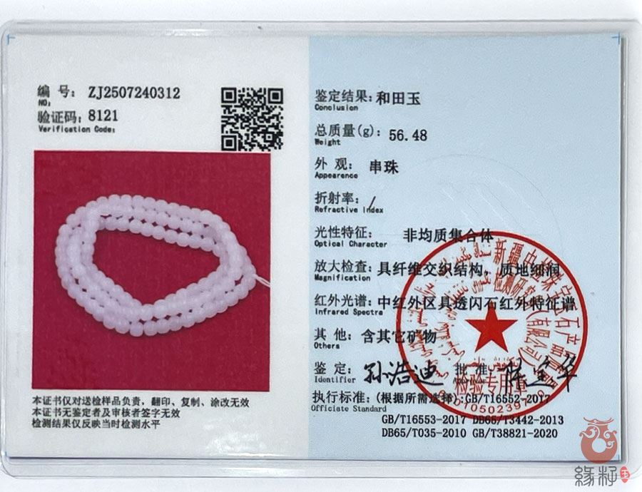 (附:新疆岩矿宝玉石产品质量监督检验站国家和田玉产品质量监督检验中心样例)