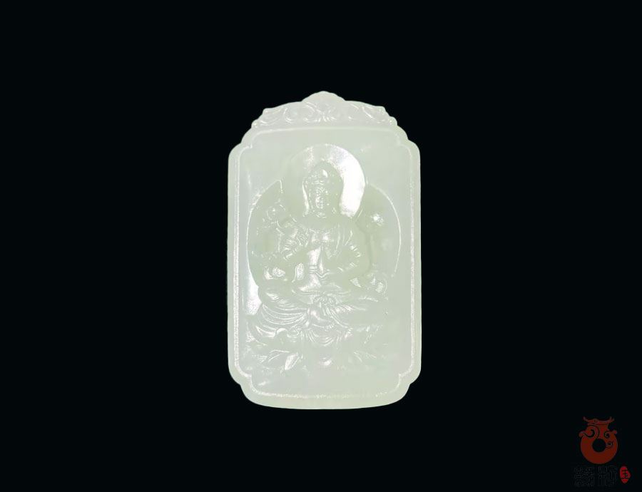 和田玉温润养人,观音本身具消病除障法力,共同强化祛病延寿的象征意义。