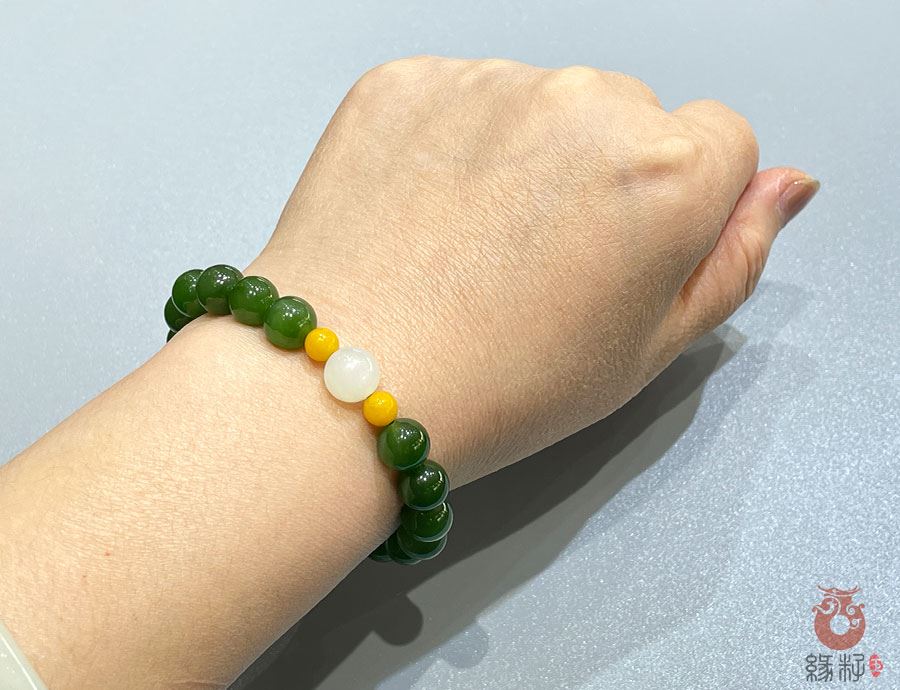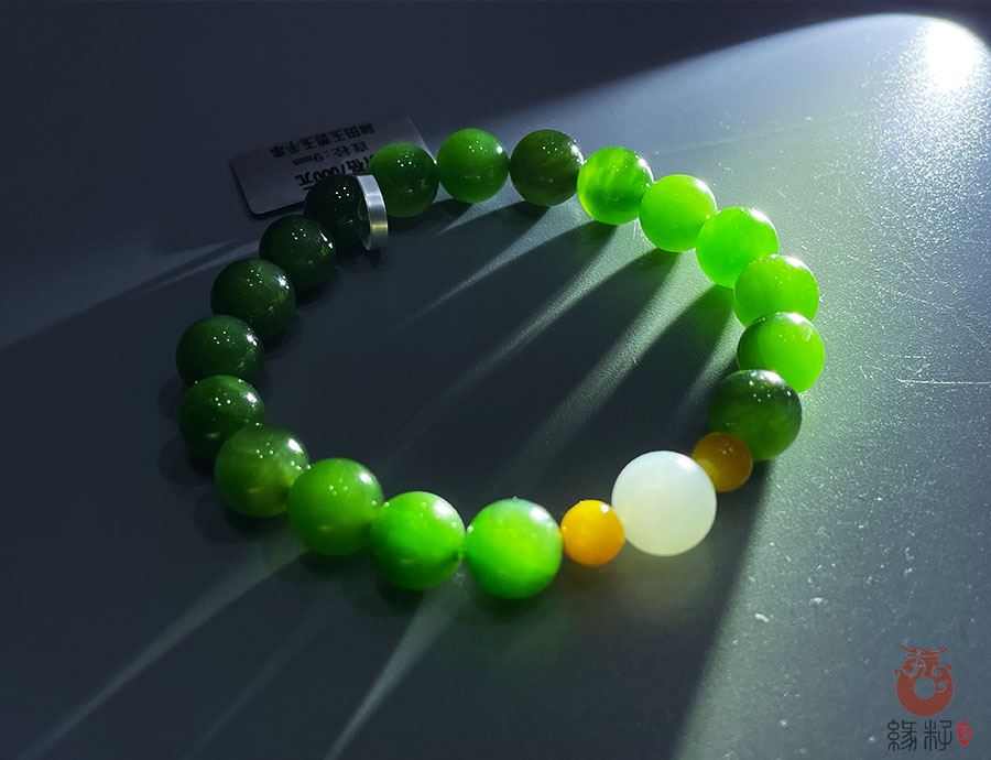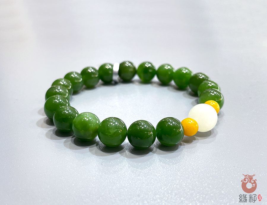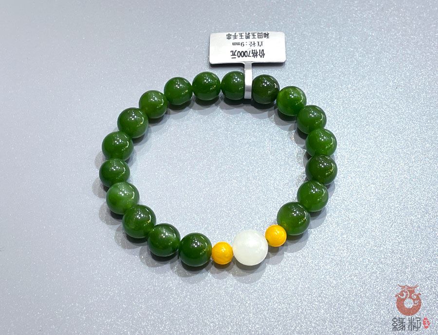作品简述:缘籽和田玉9.5mm圆珠手串手链,天然优质和田玉碧玉,苏工大师设计雕刻,质地油润,光泽细腻,雕工精细,寓意幸福美满,国检证书,七天无理由退货。