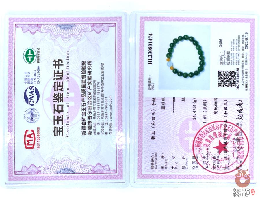 中国新疆和田玉网出售的商品均出具以下资质的国家权威质检部门质检证书: