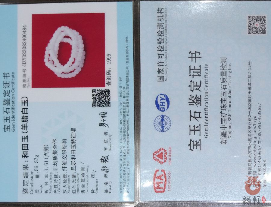 (附:新疆岩矿宝玉石产品质量监督检验站国家和田玉产品质量监督检验中心样例)