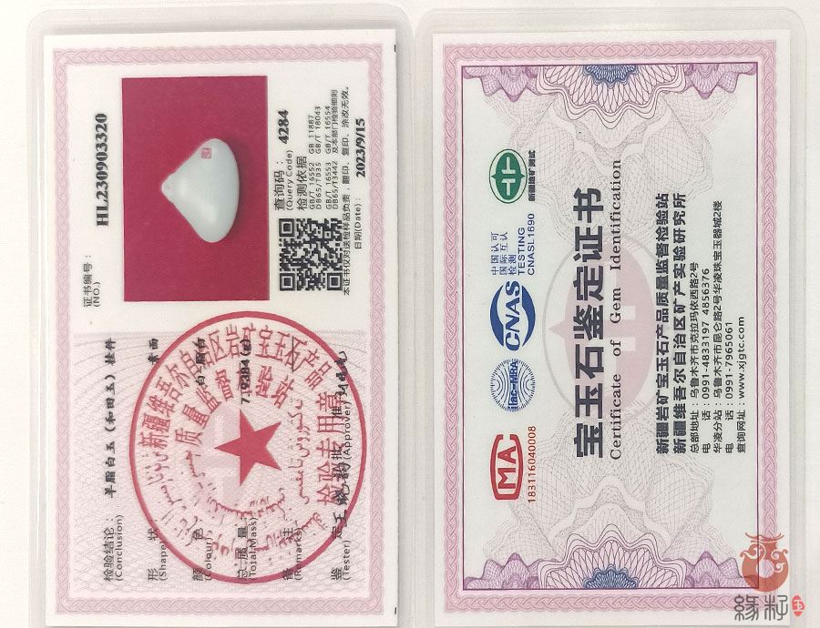 中国新疆和田玉网出售的商品均出具以下资质的国家权威质检部门质检证书: