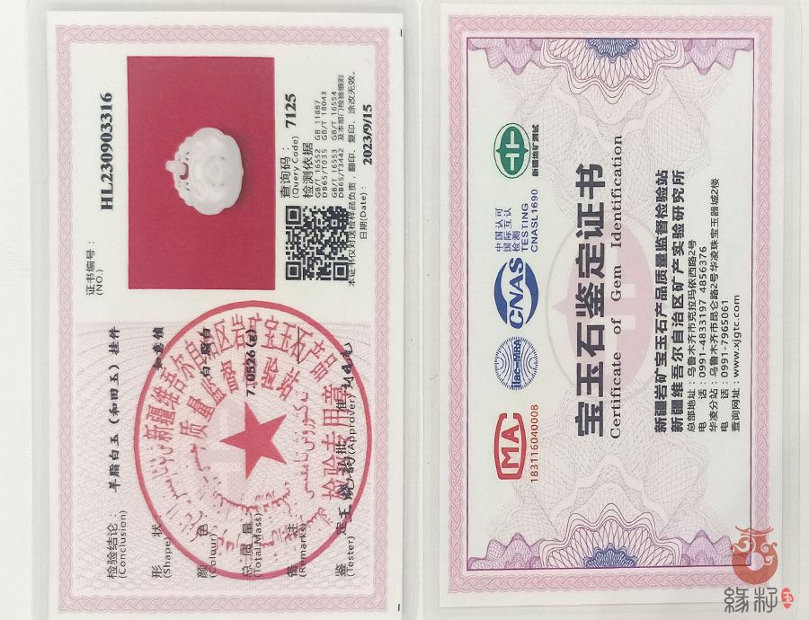 中国新疆和田玉网出售的商品均出具以下资质的国家权威质检部门质检证书: