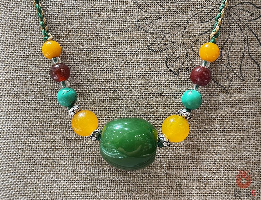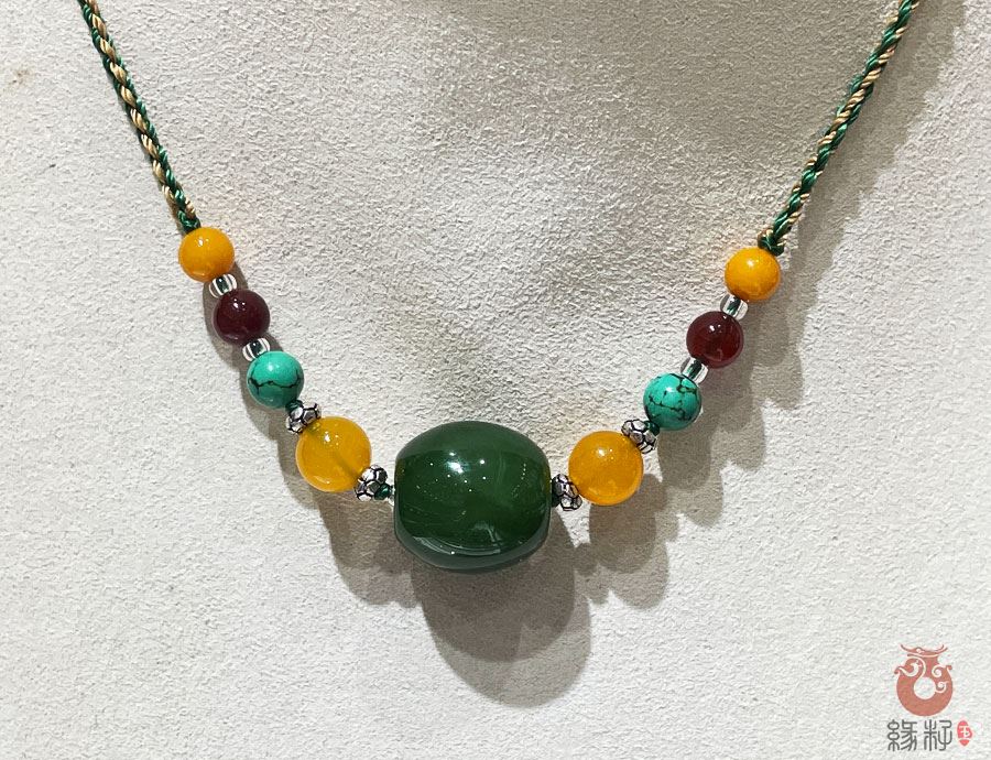 作品简述:和田玉项链选用纯天然上等和田玉碧玉猫眼原料,颗颗精选,晶莹圆润饱满,和田玉碧玉猫眼20mm珠项链质地纯净,油润光泽细腻,国检证书