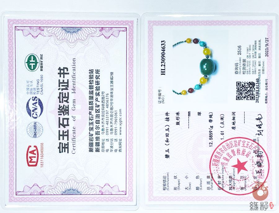 (附:新疆岩矿宝玉石产品质量监督检验站国家和田玉产品质量监督检验中心样例)