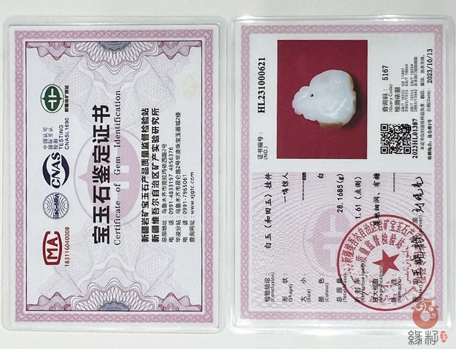 (附:新疆岩矿宝玉石产品质量监督检验站;国家和田玉产品质量监督检验中心样例)
