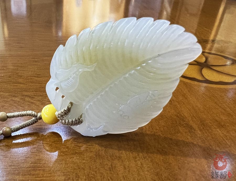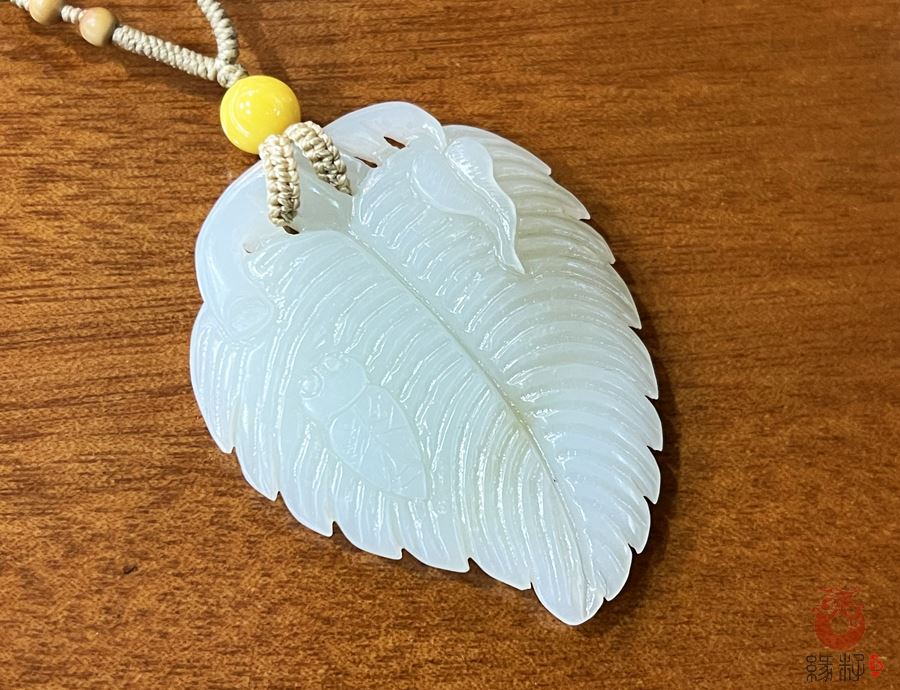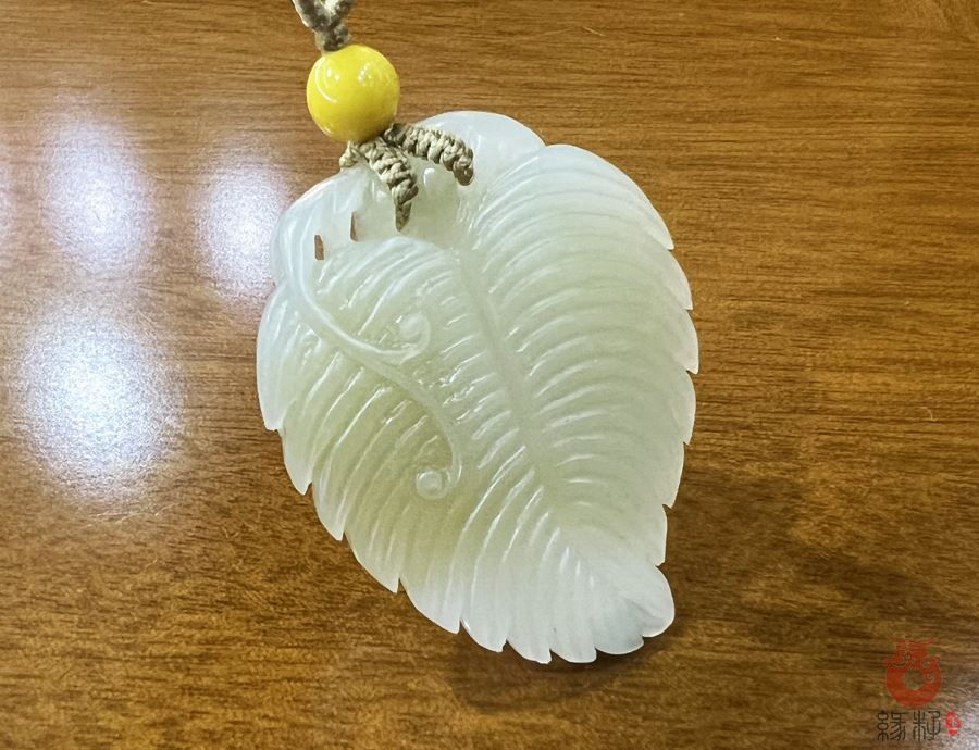 作品简述:缘籽和田玉叶子挂件,天然优质和田玉白玉,苏工大师设计雕刻,质地油润,光泽细腻,雕工精细,寓意大业有成,国检证书,七天无理由退货。