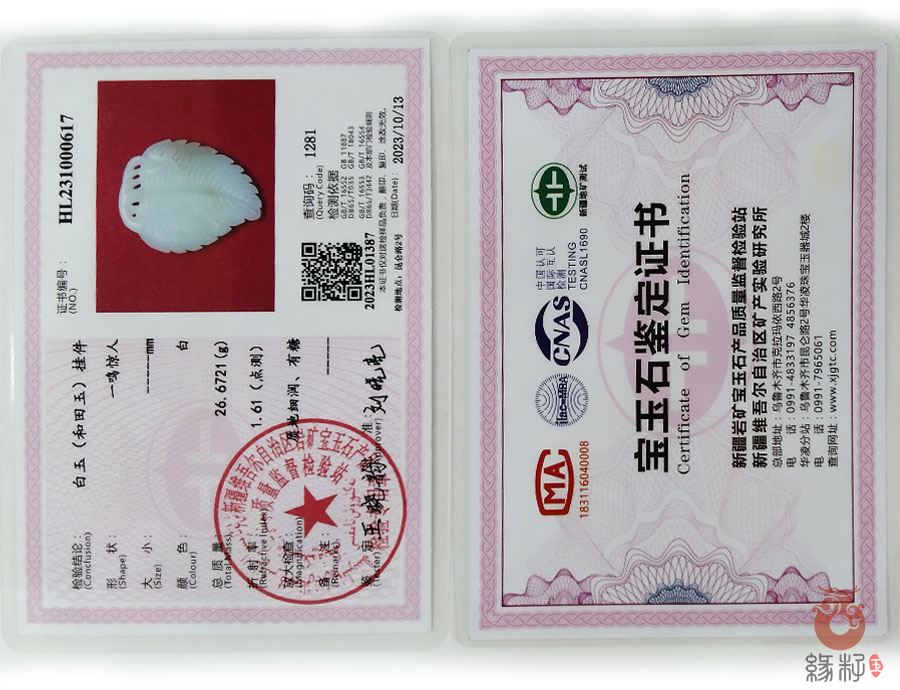 中国新疆和田玉网出售的商品均出具以下资质的国家权威质检部门质检证书: