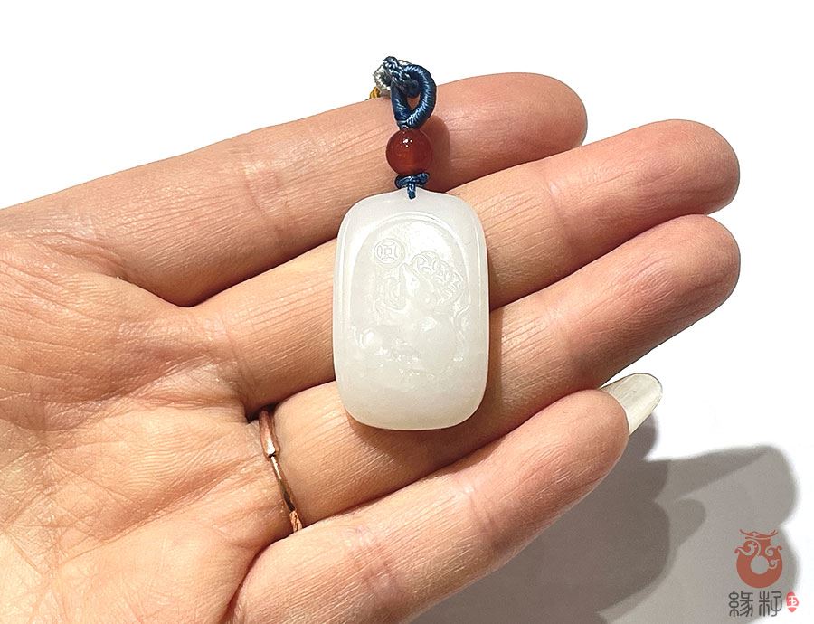 作品简述:和田玉十二生肖挂件羊脂白玉生肖鼠吊坠数你有钱