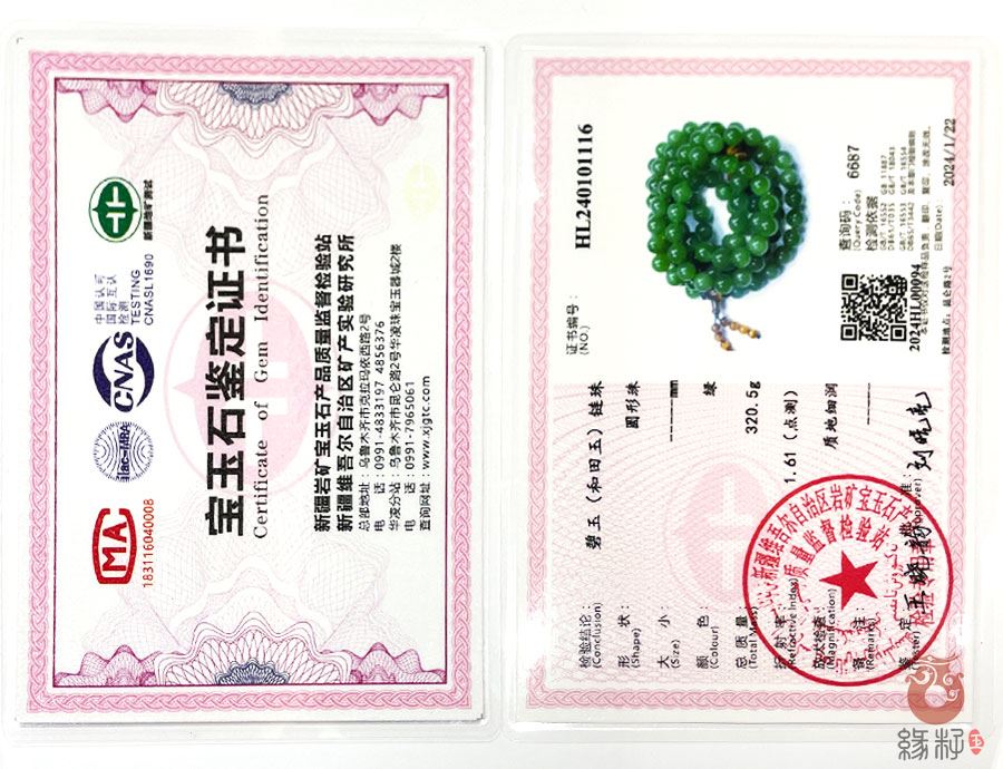 中国新疆和田玉网出售的商品均出具以下资质的国家权威质检部门质检证书: