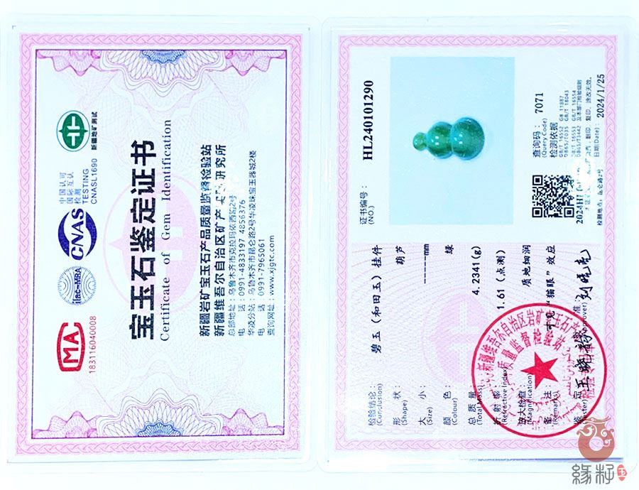 中国新疆和田玉网出售的商品均出具以下资质的国家权威质检部门质检证书: