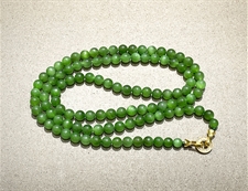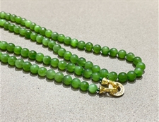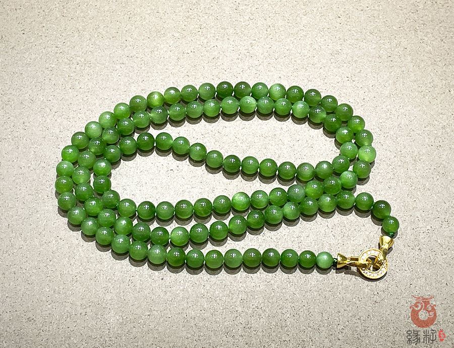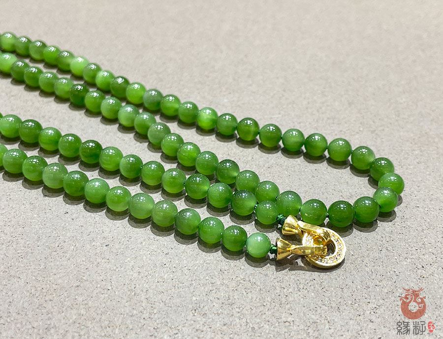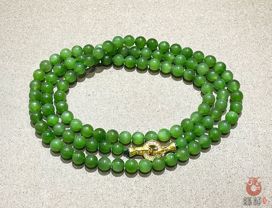 作品简述:和田玉佛珠项链选用纯天然上等和田玉碧玉原料,颗颗精选,晶莹圆润饱满,和田玉碧玉6mm珠佛珠项链质地纯净,油润光泽细腻,国检证书