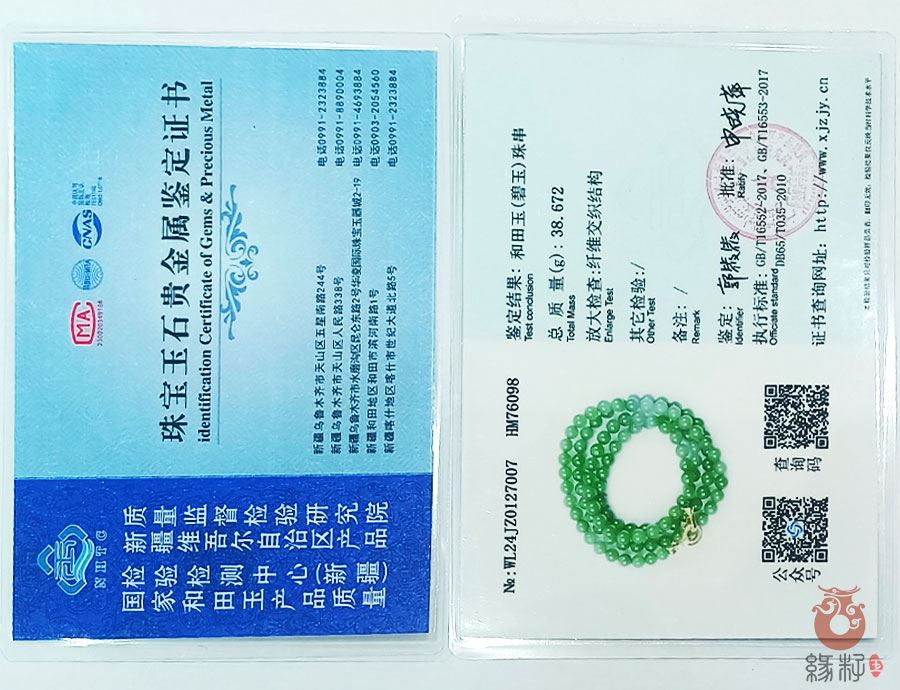 中国新疆和田玉网出售的商品均出具以下资质的国家权威质检部门质检证书: