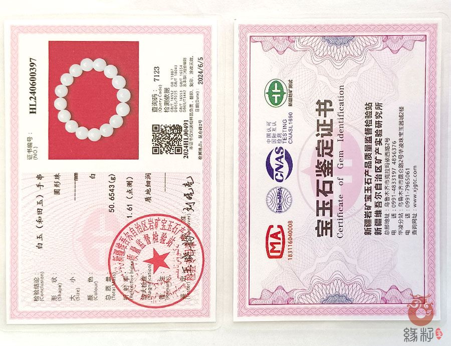 中国新疆和田玉网出售的商品均出具以下资质的国家权威质检部门质检证书: