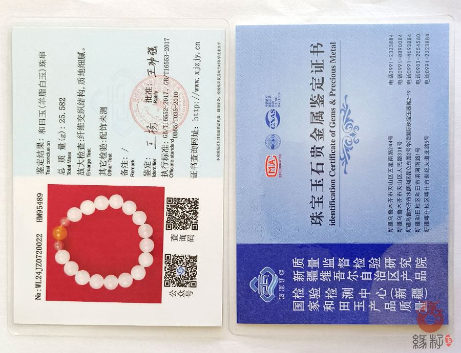 (附:新疆岩矿宝玉石产品质量监督检验站国家和田玉产品质量监督检验中心样例)