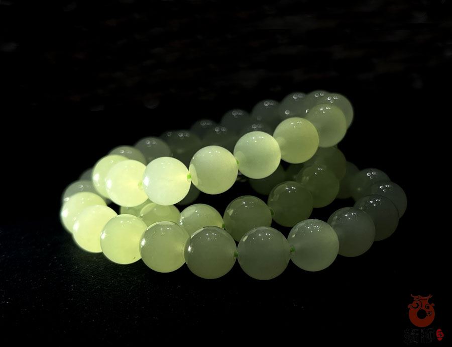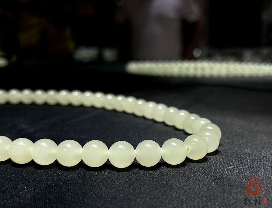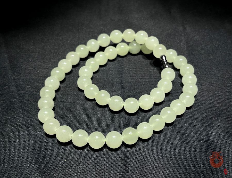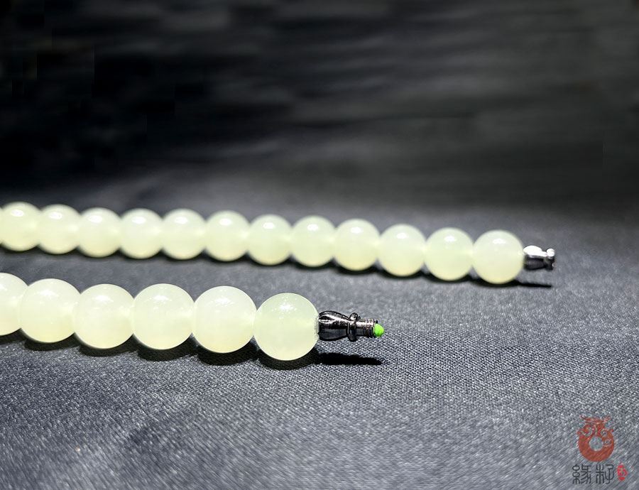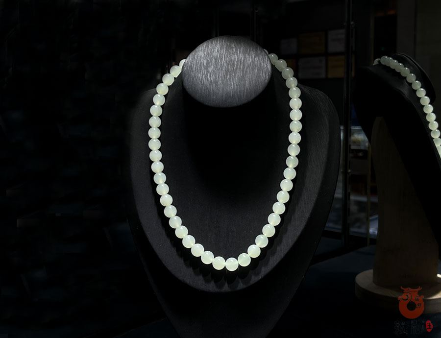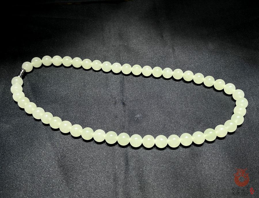 作品简述:和田玉项链和田玉青白玉10mm圆珠项链