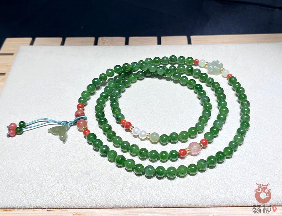 作品简述:和田玉项链和田玉碧玉6mm珠项链
