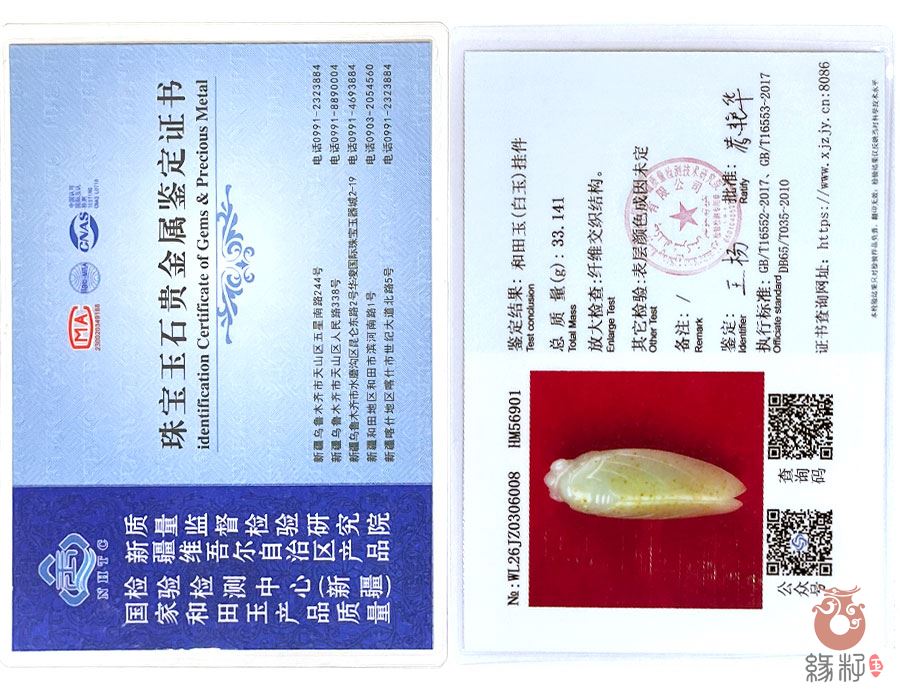 (附:新疆岩矿宝玉石产品质量监督检验站国家和田玉产品质量监督检验中心样例)
