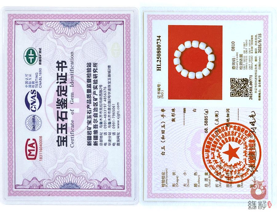 中国新疆和田玉网出售的商品均出具以下资质的国家权威质检部门质检证书: