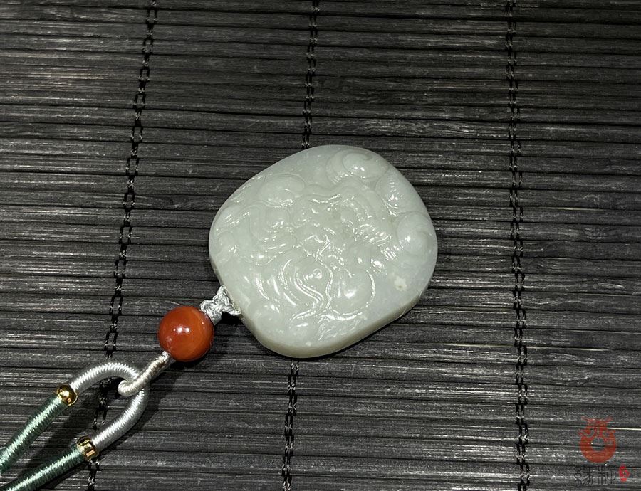 作品简述:缘籽和田玉瑞兽挂件,天然优质和田玉青白玉籽料,苏工大师设计雕刻,质地油润,光泽细腻,雕工精细,寓意吉祥如意,国检证书,七天无理由退货。