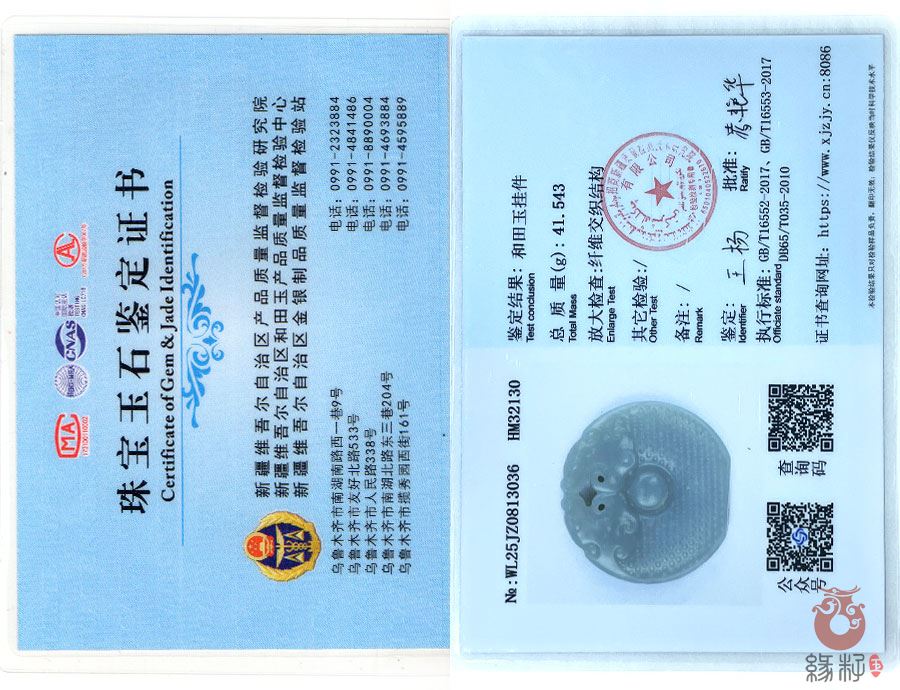 (附:新疆岩矿宝玉石产品质量监督检验站国家和田玉产品质量监督检验中心样例)