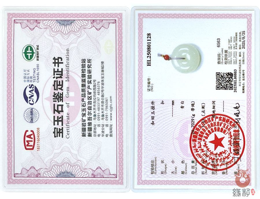中国新疆和田玉网出售的商品均出具以下资质的国家权威质检部门质检证书: