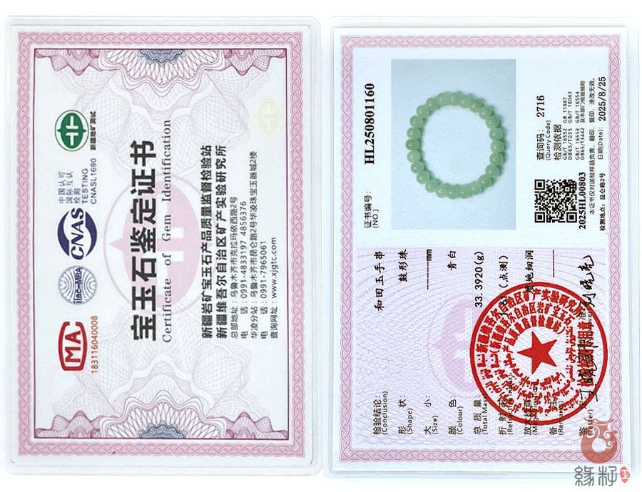 (附:新疆岩矿宝玉石产品质量监督检验站国家和田玉产品质量监督检验中心样例)
