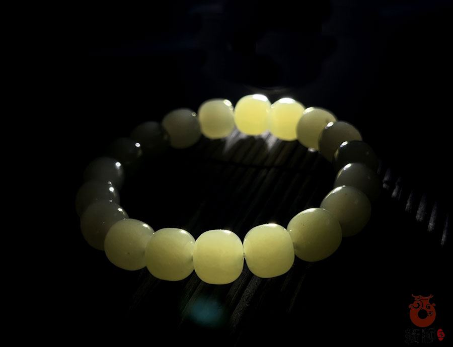 作品简述:和田玉手串选用纯天然上等和田玉白玉原料,颗颗精选,晶莹圆润饱满,和田玉青白玉10mm鼓形珠手串质地纯净,油润光泽细腻