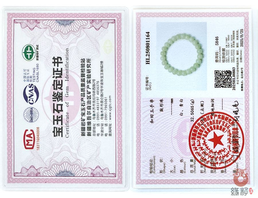 (附:新疆岩矿宝玉石产品质量监督检验站国家和田玉产品质量监督检验中心样例)