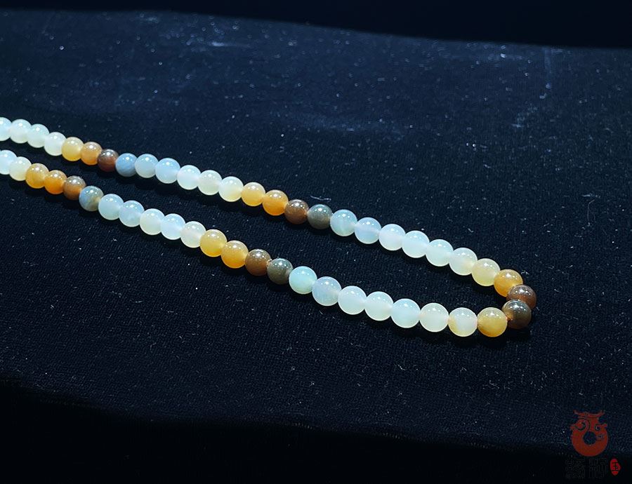 作品简述:和田玉手串选用纯天然上等和田玉多宝原料,颗颗精选,晶莹圆润饱满,和田玉多宝5mm圆珠手串质地纯净,油润光泽细腻