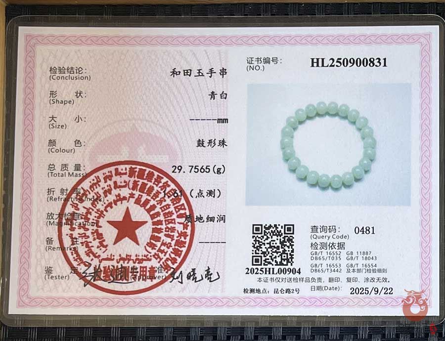中国新疆和田玉网出售的商品均出具以下资质的国家权威质检部门质检证书: