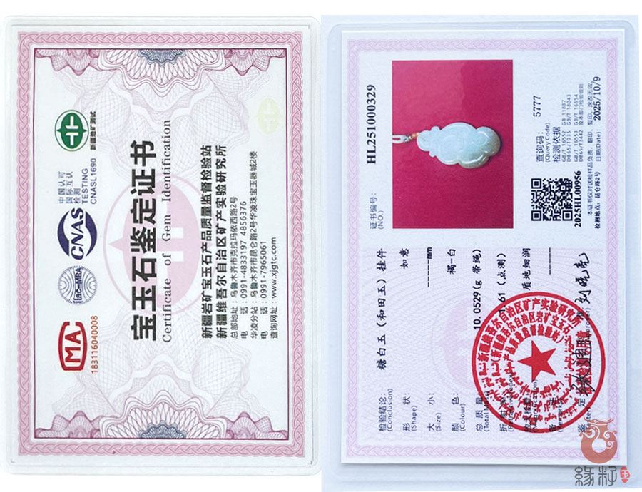 (附:新疆岩矿宝玉石产品质量监督检验站国家和田玉产品质量监督检验中心样例)