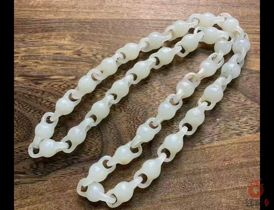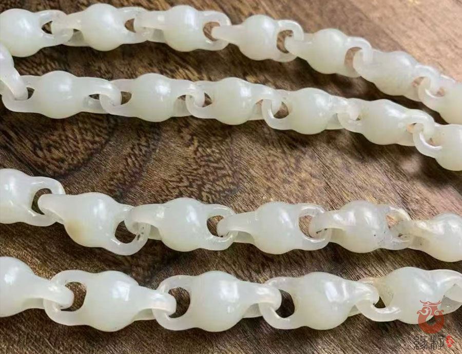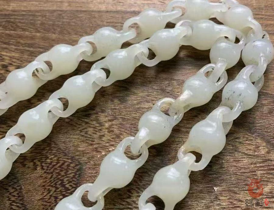 作品简述:和田玉工艺项链选用纯天然上等和田玉白玉原料,颗颗精选,晶莹圆润饱满,和田玉白玉活环一体工艺项链质地纯净,油润光泽细腻,国检证书