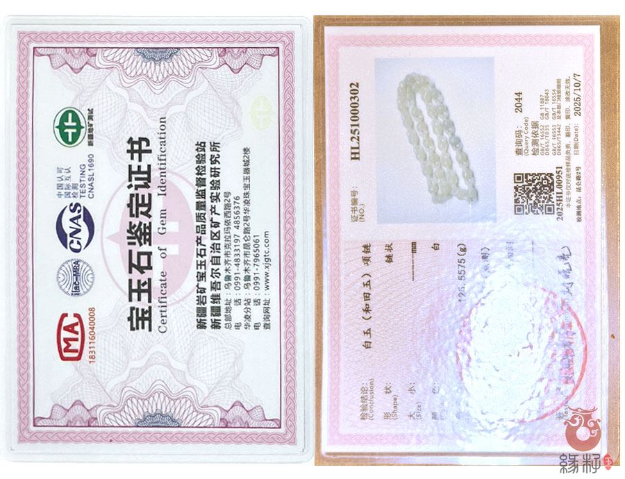 (附:新疆岩矿宝玉石产品质量监督检验站国家和田玉产品质量监督检验中心样例)