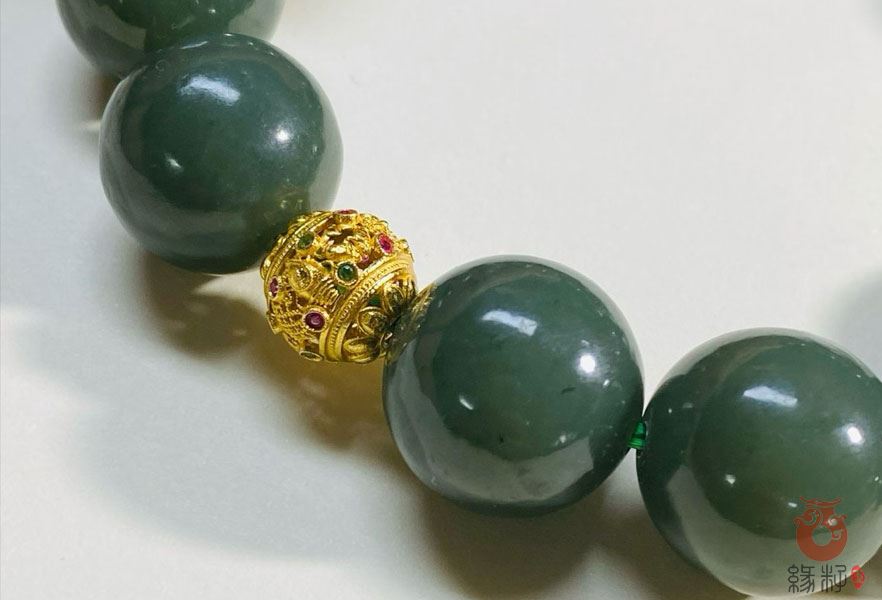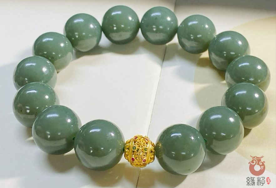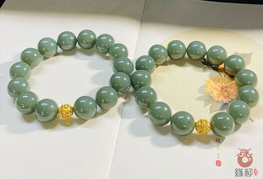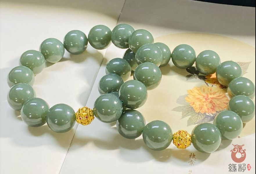 和田玉15mm圆珠手串手链青玉手串手链幸福美满