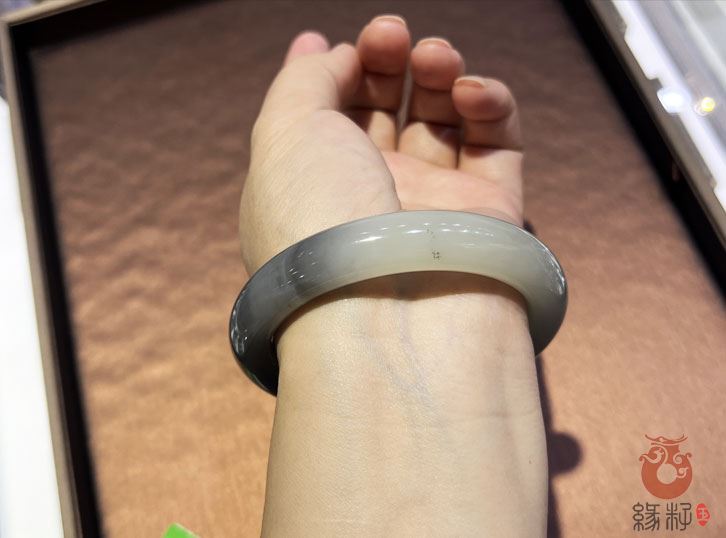 作品简述:缘籽和田玉烟青玉扁条时尚款手镯,纯天然上等和田玉,苏工大师制作,缘籽玉烟青玉手镯质地油润光泽细腻,设计完美做工精细,国检证书