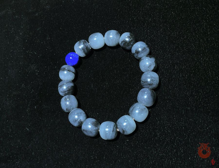 作品简述:和田玉手串选用纯天然上等和田玉墨玉籽料原料,颗颗精选,晶莹圆润饱满,和田玉墨玉籽料11.5mm鼓形珠手串质地纯净,油润光泽细腻