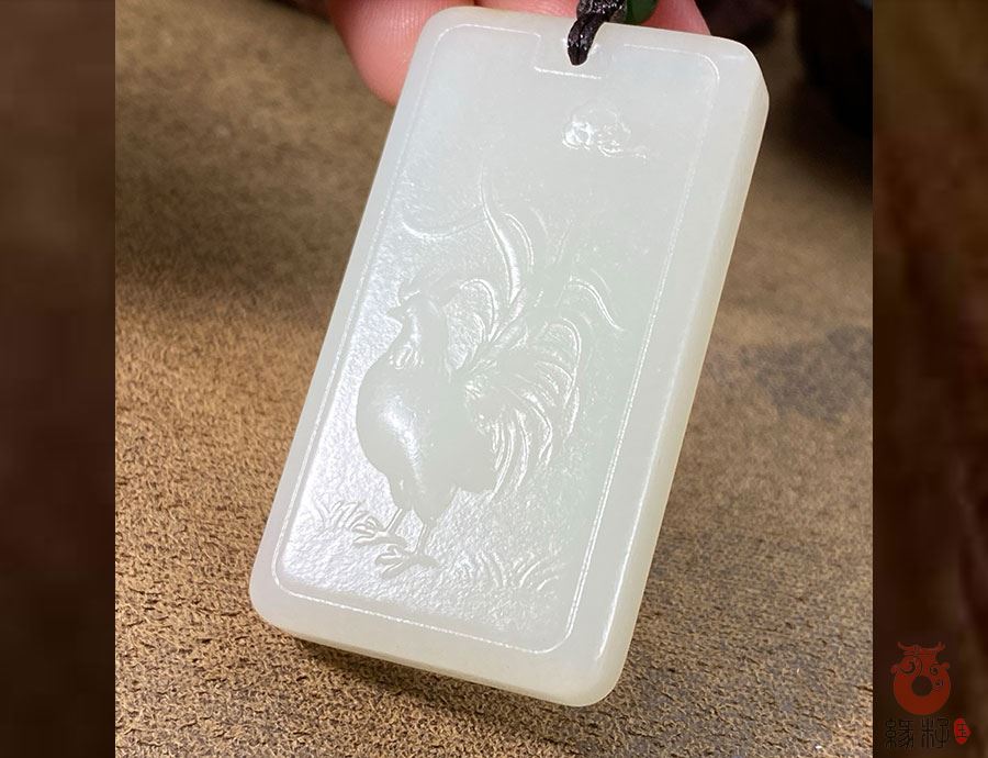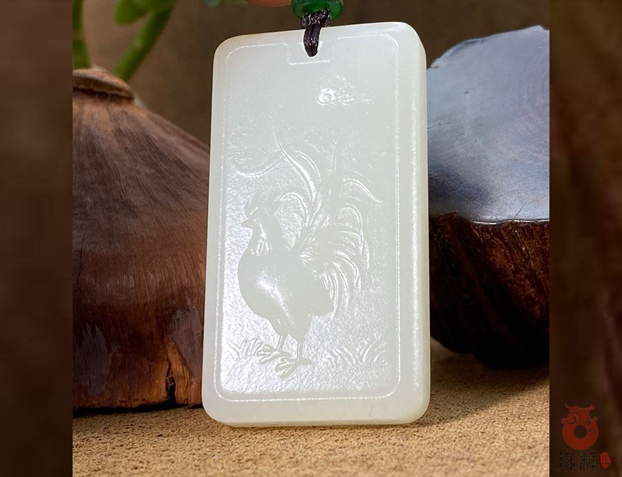 作品简述:缘籽和田玉生肖鸡挂件吊坠,天然优质和田玉白玉,苏工大师设计雕刻,质地油润,光泽细腻,雕工精细,寓意鸣瑜破晦,国检证书,七天无理由退货。