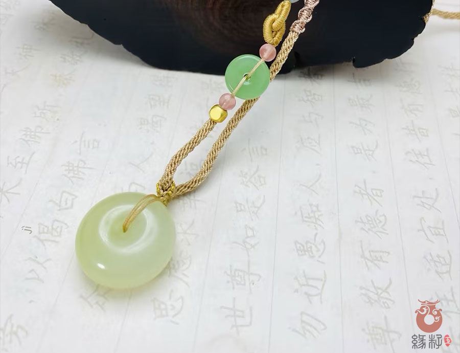 作品简述:缘籽和田玉平安扣挂件吊坠,天然优质和田玉黄玉,苏工大师设计雕刻,质地油润,光泽细腻,雕工精细,寓意平平安安,国检证书,七天无理由退货。